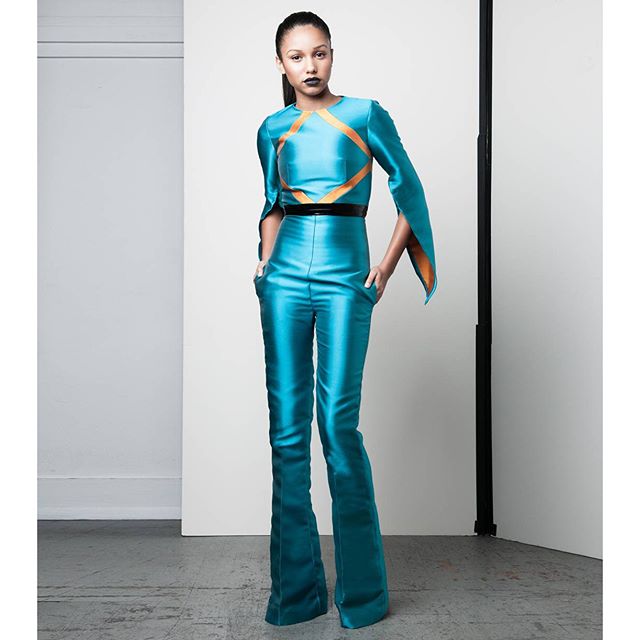 “Adinkra cloths” were traditionally worn only by royalty, translating this element into wearerbility for todays woman was important during the development of the collection. Collaborating with our Italian fabric weavers, we created custom geometric jacquard, double face twill jacquard with silk organza, silk/wool and pantent leather. Transformation, extravagance, and elegance personifies the inspirations behind the collection"